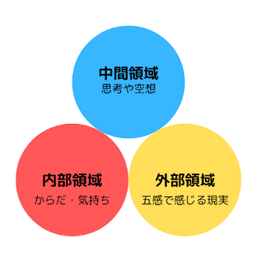 ゲシュタルト療法は「気づき」を「外部領域の気づき」「内部領域の気づき」「中間領域の気づき」という3つの領域に分けて捉えます。